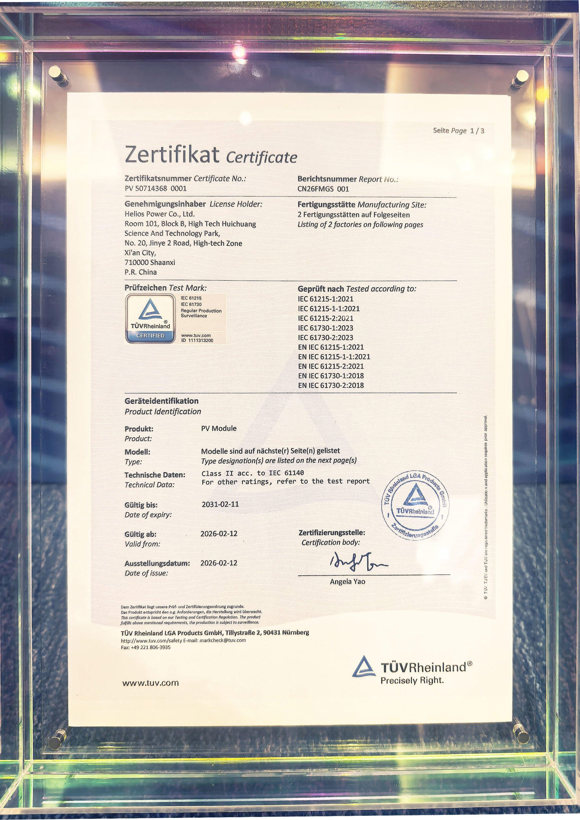 IEC 61215与IEC 61730是国际电工委员会制定的光伏领域最具公信力的两大核心标准。其中,IEC 61215主要考核光伏组件的长期可靠性、功率输出稳定性及耐候性能;IEC 61730则聚焦电气安全,涵盖防火、防触电、机械强度等关键指标。两项认证同时通过,意味着赫里欧BRPV产品在设计、制造、性能及安全保障等方面均达到国际最高等级,具备全球通行的“品质护照”。
