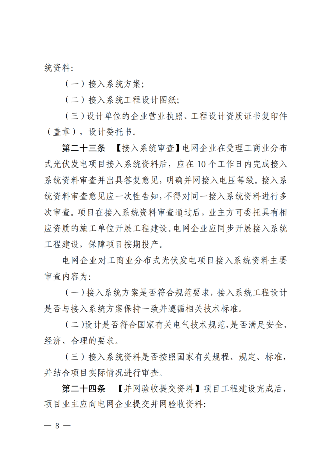 工商业项目工程建设完成后,提交以下并网验收资料: